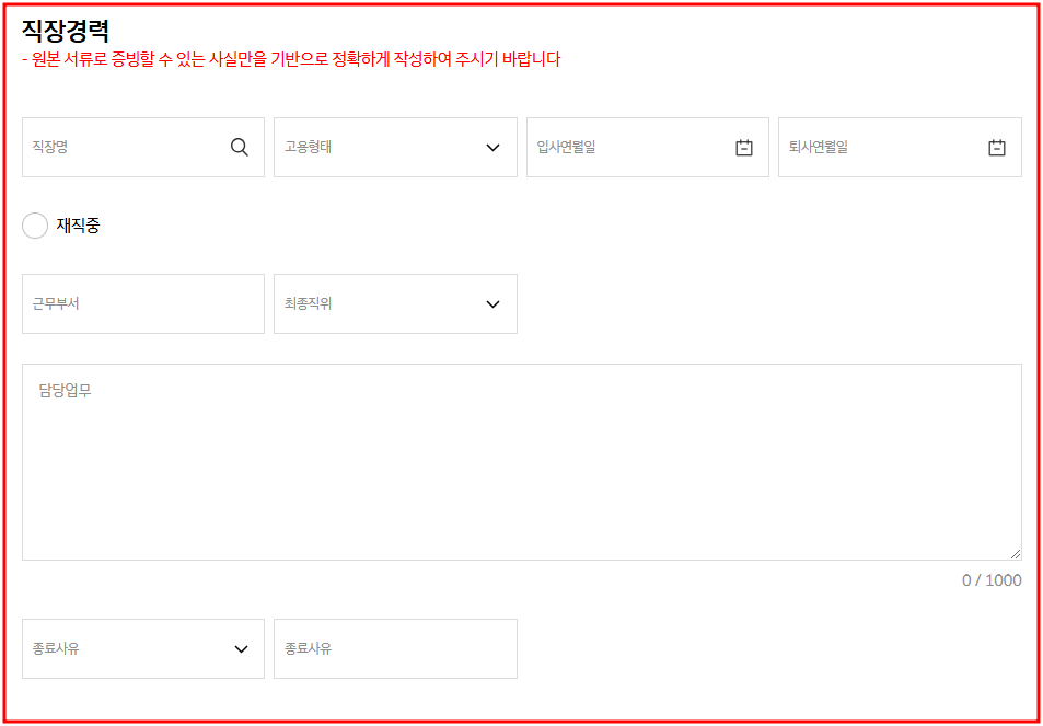 이력서의 직장경력은 회사명 / 근무기간 / 직책을 먼저 기재하고,